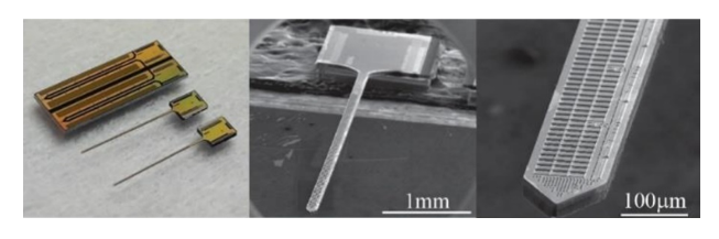 Fig 23. Taking advantage of modern semiconductor fabrication techniques allows for microelectrode arrays of extreme density. Shown is a single-shank SiNAPS probe only 120μm wide with 256 recording sites.