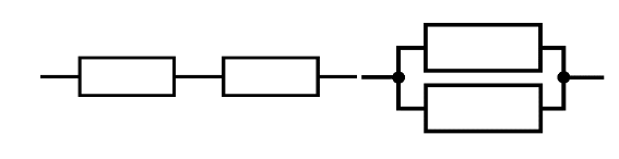 . If the resistors are equal this simplifies to R/2. This again makes sense using our formula for resistance, as if you were to put two identical resistive elements side-by-side, this would be the same as a single resistor with twice the cross-sectional area, and therefore the resistance would be half. Likewise in the hydraulic model, if you were to insert a second hose in your cylinder of water, you would expect to double the rate of flow of water out of it.