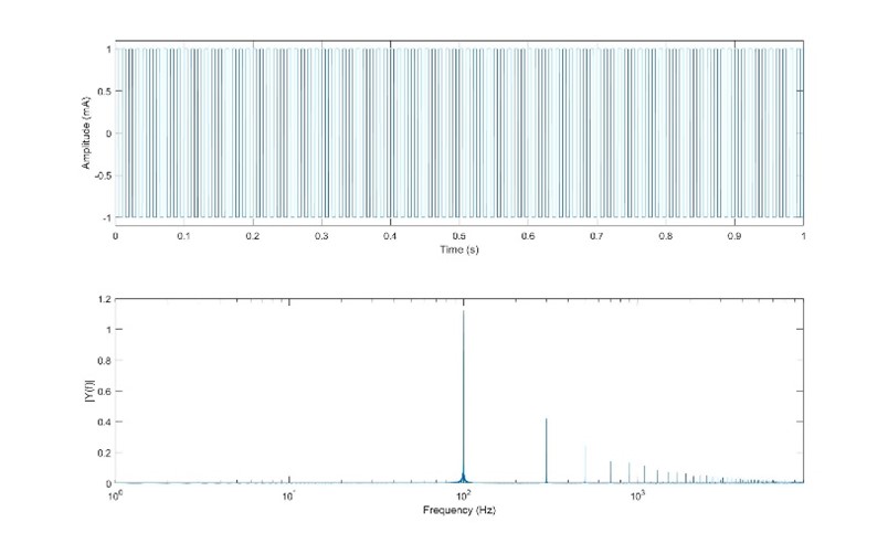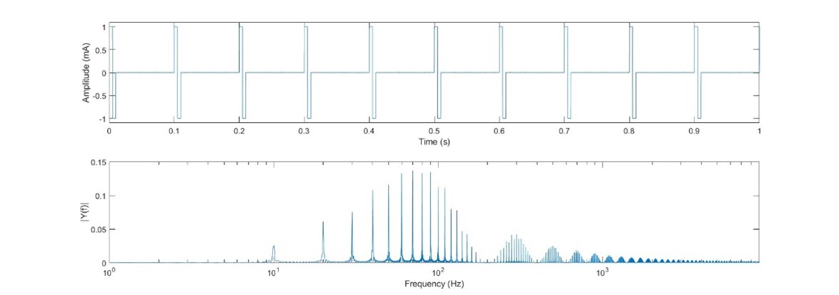 It is easy to predict the outcome when stimulating with sinusoidal waveforms as you can simply measure the impedance of your electrode with a test signal of the same frequency as your stimulus waveform to get an accurate impedance, but things get more complicated with complex waveforms, particularly nonlinear waveforms (such as square wave pulses) which have an infinite power spectrum. One common mistake that people make is simply recording the impedance of their electrodes at the standard frequency (1kHz), and using that value regardless of their stimulation waveform. Another common mistake is to use the pulse frequency as the basis of their calculation when trying to determine if the compliance voltage will be violated. Let’s look at where these assumptions can fail, and how to more accurately predict the results when using nonlinear waveforms.