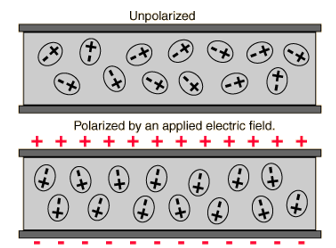 Fig 4. A material with higher permittivity is more easily polarized in an electric field, and able to hold more charge at its surface. Image from Wikipedia.