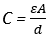 The simplest form of a capacitor is a parallel plate capacitor; as the name implies it is made up of two parallel plates of conductive material with a dielectric in between. It is the inspiration for the schematic diagram symbol of a capacitor. A dielectric is an insulating material, ideally with high permittivity, i.e. it will not pass current but polarize more strongly in an electric field, allowing more charge to be held at either end (see Fig. 4). The capacitance of a parallel plate can be calculated using the formula C = εA/d, where ε is the permittivity of the dielectric, A is the area of the parallel plates, and d is the distance between the plates or thickness of the dielectric (see Fig. 5).