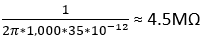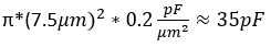 Industrial electrolytic capacitors will oxidize the surface of the metal before placing it in electrolyte; this creates an easily definable dielectric layer that makes the capacitance easy to calculate, and therefore easy to design the dimensions needed for a specific capacitance value. Since an electrode in electrolyte does not have this clearly defined layer, capacitance is not easily predicted or calculated, however the capacitance of platinum in saline has been experimentally measured to be approximately 0.2pF/μm2 (DA Robinson, The Electrical Properties of Metal Microelectrodes. Proceedings of the IEEE, Vol 56, No 6, June 1968). If we use this value for our 15um diameter platinum electrode that we looked at earlier in the article, and a frequency of 1kHz (we will explain in the next section why we are using 1kHz), this a capacitance of
