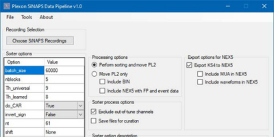 Plexon has developed the SiNAPS Data Pipeline (SDP), a collection of Plexon- and 3rd-party software tools that enable users to overcome the challenges inherent in sorting and analyzing large data sets recorded from high-density, CMOS-based probes. NeuroExplorer